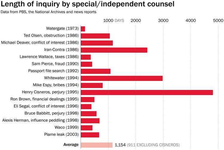Donald Trump disembarks Marine One yesterday as he returns to the White House after speaking at the U.S. Coast Guard Academy Commencement Ceremony. (Jabin Botsford/The Washington Post)  | | | BY JAMES HOHMANN | | with Breanne Deppisch | | | THE BIG IDEA: The White House tried hard last night to downplay the significance of the Justice Department appointing a special counsel to investigate possible coordination between President Trump's associates and Russian officials. Robert S. Mueller III, who spent 12 years as FBI director, will lead the probe. In their account, Deputy Attorney General Rod Rosenstein called up White House Counsel Don McGahn at 5:30 p.m. to give him a head's up that he was going to make the announcement half an hour later. A senior administration official told reporters that Trump was "unbelievably calm and measured." The press office then put out this statement under the president's name: "A thorough investigation will confirm what we already know — there was no collusion between my campaign and any foreign entity. I look forward to this matter concluding quickly." Undercutting the party line a little, though, the president took to Twitter this morning to express frustration about the mounting investigation and once against present himself as the victim of a witch hunt: -- Remember: There would be no special prosecutor if Trump had not fired James Comey (allegedly after asking him to end the FBI's investigation into Michael Flynn) and then confessed that he did so with Russia on his mind. This is yet another reminder of just how badly the inexperienced president's impulsive decision and its bungled rollout has backfired on him. -- In the short-term, politically, this newest development might give Republicans and the White House a little bit of breathing room. They can offer support for the special counsel to deflect many of the difficult and important questions that remain unanswered. But, in truth, the long-term danger to Trump's presidency from the Russia scandal is greater today than it was yesterday. As long as Mueller's probe drags on, a huge dark cloud will hang over the White House. Who knows just how high up this investigation might go? Or, very hypothetically at this point, who in the Trump orbit might turn state's witness if offered a deal to avoid jailtime? And Mueller is respected enough (more on that below) that any attempt to neuter him, or even just rein him in, could lead to a Constitutional crisis. In that way, Trump just lost a little more control over the fate of his presidency. -- How aggressive the Russia investigation will become is now up to Mueller. Rosentein's order charges Mueller with investigating "any links and/or coordination between the Russian government and individuals associated with the campaign of President Donald Trump," as well as "any matters that arose or may arise directly from the investigation." Mueller is also empowered to probe possible attempts to stymie his investigation. That language gives him leeway to interpret his mandate broadly if he chooses. It also might mean he goes after people who leaked classified information related to the bureau's Russia investigation. He can continue his work however long he wants, and he is broadly "authorized to prosecute federal crimes arising from the investigation." -- That means this could last for years – potentially through the president's 2020 reelection campaign. Philip Bump explored how long the work of previous special prosecutors/counsels took:  -- The Wall Street Journal's editorial board, primarily concerned with advancing conservative tax reform though Congress, says Rosenstein made a "mistake" by "bending to political pressure" and worries it will hinder the GOP agenda: "These expeditions rarely end well for anyone … It opens up years of political risk to the Trump Administration … The manner of (Mueller's) appointment and the subject he's investigating make him de facto untouchable even if he becomes an abusive Javert like Patrick Fitzgerald … Mueller will be under pressure to bring criminal indictments of some kind to justify his existence. He'll also no doubt bring on young attorneys who will savor the opportunity to make their reputation on such a high-profile investigation. … He is highly attuned to the political winds. As they say in Washington, lawyer up." -- Pete Wehner, a former senior aide to Bush 43 who was called to testify before a grand jury during the investigation into the leak of CIA agent Valerie Plame's identity, told Politico: "There's always a mood in a White House. If you have a special prosecutor, that can dampen the spirit. It just changes things. It makes life more complicated (even) for people who are completely innocent. If you're guilty, obviously it makes it much more difficult. People are fearful whatever they've done and transgression they've committed is going to be revealed." "The risk is that you lose control of your agenda," added Robert Luskin, a Washington white-collar attorney who represented Karl Rove in the Plame investigation, as well as a pair of Clinton senior officials during Whitewater. "It's an enormous distraction. It's an energy suck. As long as the clouds hang over a presidency it becomes much more difficult to get anything else done." This is why White House officials and GOP leaders in Congress have so strongly resisted a special counsel until now. Flashback:  | | Washington weighs in on the special counsel appointment | -- Empowering Mueller is unlikely to contain the fallout from Trump firing Comey or stop the ongoing congressional investigations. The leaders of the Senate and House committees conducting their own inquiries pledged last night to move forward, setting up a complex landscape of potentially conflicting investigations — and competing goals. From Sean Sullivan, Ed O'Keefe, Elise Viebeck and Mike DeBonis: "Senate Intelligence Committee Chairman Richard Burr (R-N.C.), whose panel is conducting one