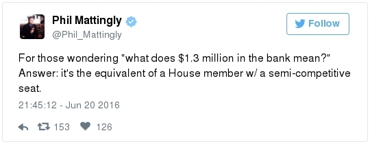 -- The FEC reports show that Trump has about 70 staffers total, one-tenth as many as Clinton's 683. But, instead of rushing to staff up, he bragged about it during an interview with Bill O'Reilly on Fox News last night. -- More problems: Donations through the "Trump Victory Fund," expected to help boost his general-election coffers, have also trickled in slower than expected, Matea notes. The numbers really are startling when compared to Mitt Romney's at this point four years ago. In May 2012, the former Massachusetts governor raised more than $34 million and ended the month with more than $60 million in the bank. Nearly $26 million that month came through the Romney Victory Fund. (The Republican National Committee itself took on $2 million more debt last month.) -- One of the problems with Trump depending on the RNC: Many state party leaders don't like him. Because he's not building his own field operation, he's depending on the official GOP apparatus. In Ohio, that means leaning on loyalists to Gov. John Kasich, who is withholding his endorsement, the Columbus Dispatch notes. Democrats say they now have 150 full-time employees on the ground in Ohio, compared to 50 paid staff from the RNC, according to the Cleveland Plain Dealer. -- The pro-Clinton super PAC Priorities USA, meanwhile, had its best fundraising month yet, raising more than $12 million during the month of May. "The organized and well-funded push for Clinton contrasts sharply with the chaos that surrounds the groups supporting Trump," Matea reports. "At least five super PACs are in the mix, creating confusion among donors unsure where to put their money." (There is little data available from most of the groups, but "one of the first groups on the scene, Great America PAC, has raised just $3.5 million since forming in February.) -- Here's a flavor of the overnight reaction to Trump's dismal May numbers: From CNN: From the New York Times: From a leading GOP election lawyer: From Mic.com: From Jeb Bush's former communications director: As The Post's Editorial Page Editor Fred Hiatt puts it, "If this were a beauty pageant, Trump would want the crown and the adoration but not the mandatory year of appearances at charity events and visits to the troops. … He seems to have no interest in doing the things that most candidates, and up until now all presidents, have had to do. Listen to advisers, for example. Have advisers. Read policy papers. Read anything but his own reviews." WHILE YOU WERE SLEEPING:  Hillary Clinton campaigns in Virginia last week. (Photo by Melina Mara/The Washington Post) -- Clinton leads Trump in Florida by 8 points (47 percent to 39 percent) and now ties him in Ohio (40-40), after trailing by 4 points last month, according to Quinnipiac University polls released this morning. They're statistically tied 42-41 in Pennsylvania. - Both candidates continue to have net negative favorability ratings. Clinton is viewed positively by 39 percent and negatively by 53 percent, compared to 33-61 for Trump.