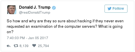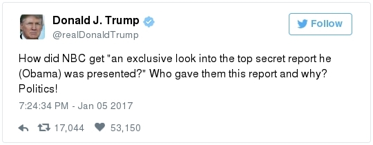 Donald and Vladimir (AF/Getty)  | | | BY JAMES HOHMANN | | with Breanne Deppisch | | | THE BIG IDEA: As the nation's top spies brief Donald Trump today on how they concluded that Russia interfered in the election, the president-elect continues to isolate himself. From the truth. From intellectually-honest members of his own party on Capitol Hill. Even from the western alliance. There are few indications that the meeting will prompt Trump to reverse himself after two months of steadfast denials in the face of mounting evidence. TRUMP VS. REALITY: If a married couple is fighting at home and they look outside and see that a guy in an ice cream truck is trying to abduct their child, they don't keep arguing. There is nothing possibly important enough to keep arguing about when your child is in danger. Or at least there shouldn't be. The guy in the metaphorical ice cream truck is Vladimir Putin. The husband is a Republican, and the wife is a Democrat. The kids are the American people. -- Trump has been trying to muddy the water, to make the hacking into a political story instead of treating it as a cyber-attack on the United States – despite a bipartisan consensus among serious and thoughtful people that this was the case. Sources who have studied the intelligence say there is essentially incontrovertible evidence that Russia was behind the hacks, that they were authorized at the highest levels of the Kremlin and that the goal was to sow deep distrust while also undermining Hillary Clinton.  | | U.S. intelligence captured Russian officials' communications celebrating Trump's victory | -- American intelligence agencies even intercepted communications in the aftermath of the election in which Russian officials celebrated and congratulated themselves on the outcome, which they saw as a geopolitical win for Moscow. The Post's Adam Entous and Greg Miller scooped last night: "The ebullient reaction among high-ranking Russian officials — including some who U.S. officials believe had knowledge of the country's cyber campaign — contributed to the U.S. intelligence community's assessment that Moscow's efforts were aimed at least in part at helping Trump win the White House," Adam and Greg report. "Other key pieces of information gathered by U.S. spy agencies include the identification of 'actors' involved in delivering stolen Democratic emails to the WikiLeaks website, and disparities in the levels of effort Russian intelligence entities devoted to penetrating and exploiting sensitive information stored on Democratic and Republican campaign networks." This information appears in a classified document, which is over 50 pages, that was delivered to President Obama yesterday. -- The president-elect, who has perhaps the most fragile ego of any man ever elected to the White House, sees anyone pointing out this truth as challenging his legitimacy, so he lashes out. -- Paul Ryan yesterday drew a distinction that Trump seems incapable of making. "Russia clearly tried to meddle in our political system. No two ways about it," the Speaker told reporters. He then argued that the hacking did not change the outcome of the election. "He won the election fair and square," Ryan said.  Donald Trump, Ed Koch and Roy Cohn at the opening of Trump Tower in 1983. (Sonia Moskowitz/Getty Images) -- Trump, who takes everything personally, lives by a never-apologize, never-back-down creed that his mentor Roy Cohn, who spent the 1950s as Joe McCarthy's chief counsel and hatchet man in the Senate, taught him during his formative years as an up-and-coming developer. This is why he refused to ever apologize for slurring John McCain, a Gold Star family, a former Miss Universe, a Mexican-American federal judge, a disabled reporter, etc., etc., etc. (If you missed them last year, it is worth reading deep dives on the Trump-Cohn relationship by The Post, the New York Times and Politico Magazine.)  Julian Assange is hiding out in the Ecuadorian embassy of London to avoid facing prosecution. (Carl Court/Getty Images) -- Many rank-and-file Republican base voters, who view politics impressionistically, look for cues from leaders like Trump and his fellow populists, such as Sean Hannity, who flew to London to interview Julian Assange earlier this week. These well-intentioned citizens are being misled and disserved by the people they depend on to stay informed. Two smart takes on this— From the right: Former George W. Bush speechwriter Michael Gerson calls it "the triumph of political tribalism over, well, every other principle or commitment." Sarah Palin, for example, urged the United States to go after Assange "with the same urgency we pursue al-Qaeda." Now, she pleads: "Julian, I apologize." As Gerson puts it, "Let's be clear about what this means. … The 2008 Republican vice presidential nominee is bowing and scraping to the man who materially aided the Taliban." From the left: "The cruelest, most condescending, and also devastatingly correct indictment of Trump's supporters was uttered not by a member of the liberal media but by Trump himself, when he mentioned that he could shoot somebody on Fifth Avenue and not lose support," writes New York Magazine's Jonathan Chait. "Trump's insinuation that his fans will ignore any evidence of his guilt, however plain, has been vindicated. Perhaps no episode has demonstrated the Fifth Avenue Principle more dramatically than the case of the Russian email hack."  | | Senate hearing exposes differences between Trump and intelligence officials | TRUMP VS. THE SPOOKS: -- Director of National Intelligence James R. Clapper Jr., testifying yesterday before the Senate Armed Services Committee, said U.S. spy agencies "stand actually more resolutely" than ever behind their conclusions. Alluding to Trump's tweets, he said: "There is an important distinction here between healthy skepticism, which policymakers, to include policymaker number one, should always have for intelligence, but I think there is a 