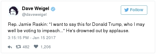Donald, Eric, Ivanka and Donald Jr. listen to one of their lawyers speak during last week's press conference. (Jabin Botsford/The Washington Post) CONFLICTS OF INTEREST: -- When Trump takes office, he will assume control of a federal bureaucracy with enormous power to bolster "nearly every corner" of his business empire -- and enhance his own fortune. From Rosalind S. Helderman, Drew Harwell and Tom Hamburger: "Providing few specifics, he promised no new foreign deals and said the company would adopt new internal systems to scrutinize potentially problematic domestic transactions. But Trump and his lawyers did not address how his administration will approach the range of regulatory actions and other decisions that could directly touch the business, which in addition to Trump-branded properties around the world includes several dozen golf courses, office and condominium buildings, a winery, and his beachfront Mar-a-Lago club. … At a minimum, according to ethics experts, government officials tasked with making decisions affecting Trump businesses could feel pressure to keep the boss happy. At worse, experts say, Trump or his allies could abuse their power to sway decision-makers." -- Waging war on the watchdogs: Priebus took a bellicose stance against Walter Shaub Jr., the director of the Office of Government Ethics, on the Sunday shows. Via Abby Phillip and Mike DeBonis: "Priebus said on ABC that Shaub 'ought to be careful' because he was 'becoming extremely political.' (Shaub has publicly criticized Trump's transition team for rushing his nominees' ethics reviews, and he called on Trump to divest his business assets to avoid conflicts.) Priebus claimed the ethics chief supported Hillary Clinton during the campaign, and he cited concerns about tweets the ethics office directed at Trump last month. 'I'm not so sure what this person at government ethics, what sort of standing he has anymore in giving these opinions,' he said. The comments and the prospect of a congressional investigation (raised by Jason Chaffetz) were taken as a thinly veiled threat to Shaub, a political appointee named by Obama in 2013 to a five-year term. 'Why is Congressman Chaffetz investigating Walter Shaub for doing his job, George, for speaking so courageously?' Norm Eisen, a former Obama ethics czar, said on ABC. Eisen on Twitter called Priebus's comments 'shocking, mafia-style THUGGERY.'" -- Meanwhile, despite his lawyers insisting he would make "no foreign deals whatsoever," Trump is proceeding with a multimillion-dollar expansion of his Scottish golf resort. HuffPost's Mary Papenfuss reports: "The Aberdeenshire Council has approved a second 18-hole golf course and more housing in the Trump International Golf Links Scotland operation. The expansion will substantially grow the complex and include a 450-room five-star hotel, timeshare complex and private housing estate … Changes are expected to significantly boost the value of the operation to the Trump Organization. Trump owns 100 percent of the Trump International Golf Links Scotland …" Still, his transition team is insisting that it does not constitute a "new" deal. "Implementing future phasing of existing properties does not constitute a new transaction so we intend to proceed," a spokeswoman said.  | | Rehearsal of presidential inauguration held at Capitol | INAUGURATION IS FOUR DAYS AWAY: -- The chair of Trump's inaugural committee said the president-elect is micro-managing "every detail" of the festivities. "He's into every detail of everything," Tom Barrack told the New York Post in an interview. "I beg him all the time to go back to running the free world and let me focus on setting the tables." -- The Presidential Inaugural Committee says that it has raised a record $90 million and expects more than 30,000 people to attend the three official balls. From Roxanne Roberts: "'I'm feeling excitement, but it's a nervous excitement,' said chief executive Sara Armstrong in an interview ... 'There are a lot of logistical items that we have to pull together during these last eight days.' The official events conclude Saturday morning … just as the Women's March in Washington is scheduled to begin. Armstrong said that she wasn't worried about protesters. 'There was a lot of concern at the convention, and it really didn't turn out to be much,' she said." -- Security measures related to the inauguration are already visible, in the form of Jersey barriers placed on the streets near Lafayette Square. From Peter Hermann: "Parking restrictions will begin Wednesday. Streets will start closing Thursday. By week's end, the nation's capital will have transformed into a virtual fortress of roadblocks, fences and armed police … Streets will be barricaded with trucks filled with sand. Five Metro stations will close Friday. Crossing Pennsylvania Avenue will be next to impossible. The peaceful transfer of power is made possible by overlaying a tight security grid using 28,000 security officials over 100 square blocks of prime downtown real estate ... To accomplish having a tranquil event amid worries of terrorist attacks and threats by some groups to disrupt the celebration requires bringing in 3,000 police officers from across the nation and 5,000 members of the National Guard, bolstering the already large law enforcement footprint imposed on everyday Washington. The numbers this year are the same as in years past." (COMMUTER GUIDE: Will you be in town for Inauguration Day? Here's how to get to – or around – Friday's festivities.) -- Stand-ins gathered for a dress rehearsal yesterday. Julie Zauzmer was there: "For a brief moment, a 53-year-old man named Greg stood on the balcony of the Capitol, being sworn in as president of the United States of America. Greg's only qualification? He's the same height as Donald Trump. Greg — Sgt. Maj. Greg Lowery, that is, a member of the U.S. Army Band — joined a cast of dozens who re-created the presidential inauguration as a d
