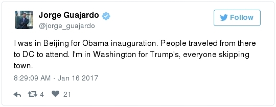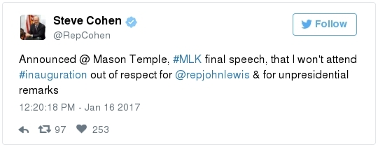 -- We posted the poll at 7 a.m. At 8:11, Trump attacked the results: A point of personal privilege: Our final Washington Post/ABC News tracking poll showed Clinton with a four-point edge in the national popular vote, a statistically-insignificant lead. Clinton won the national popular vote by two points, which was well within the margin of error. The problem was with state-level polls, not national ones. -- Trump criticized a cornerstone of the House Republicans' corporate tax reform plan, calling the border adjustment provision "too complicated" in an interview with the Wall Street Journal. -- By our count, 44 House Democrats now say that they will not attend Trump's inauguration. The number spiked after Trump attacked John Lewis. Elise Viebeck is keeping a running list of lawmakers who have announced boycotts. It now includes Don Beyer in Virginia and Anthony Brown in Maryland.  Relatives of Malaysia Airlines flight 370 passengers hold a press conference in Kuala Lumpur. (EPA/Fazry Ismail) GET SMART FAST: - The underwater search for Malaysia Airlines flight 370 has officially been suspended, nearly three years after the plane -- and the 239 passengers onboard -- vanished over the Indian Ocean without a trace. "The decision to suspend the underwater search has not been taken lightly nor without sadness," officials said in a statement. (CNN)