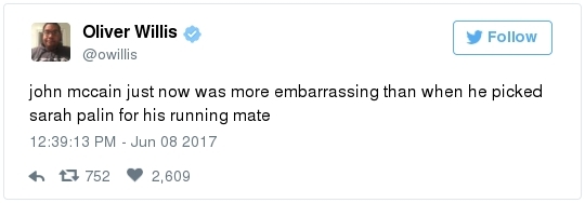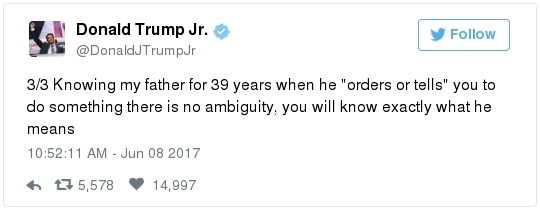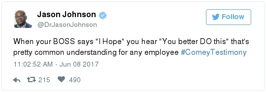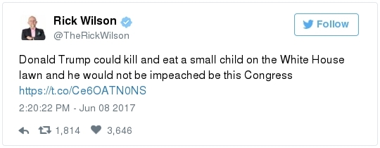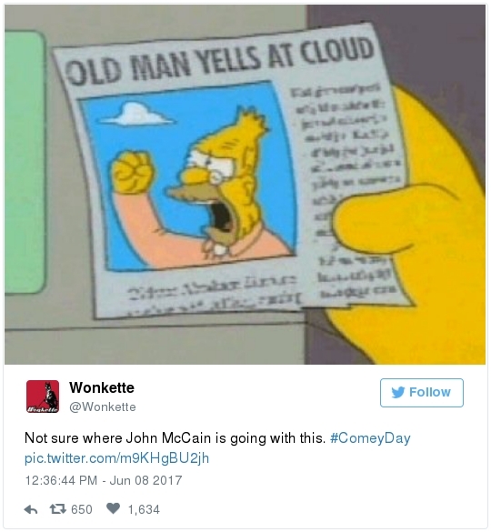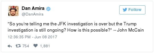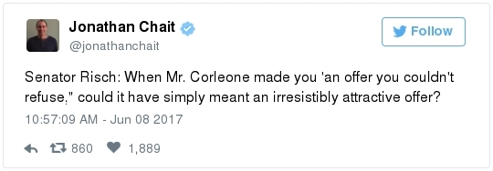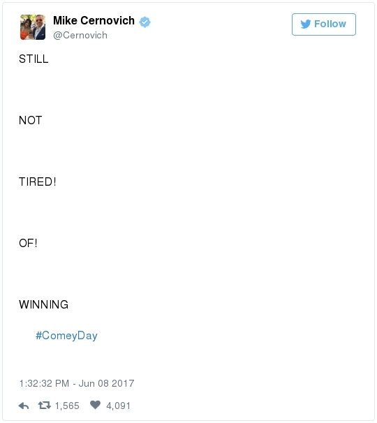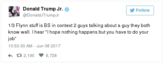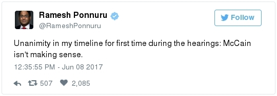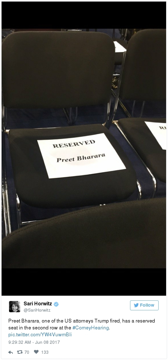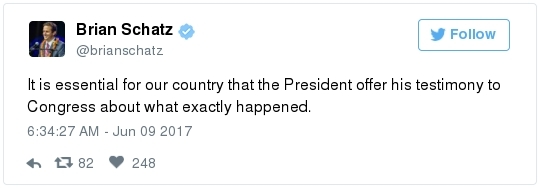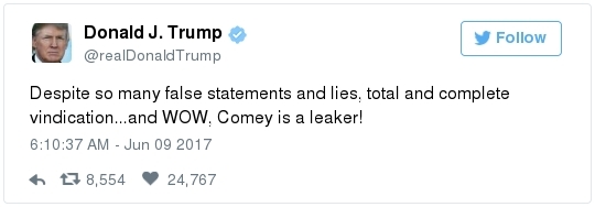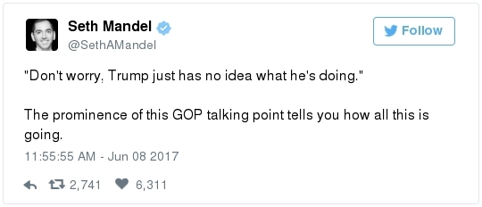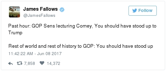 | | A historic day in Washington, in 3 minutes | -- Trump has long been adept at muddying the waters by employing the crisis management playbook that he learned from Joseph McCarthy's protégé Roy Cohn. The difference this time: He can count on the official Republican Party apparatus to do his bidding. The Republican National Committee deployed a whopping 60 staff members as part of its rapid-response "war room" effort to counter-punch at Comey, according to the Wall Street Journal. "The RNC's output was punchy, snarky and at times contradictory," David Weigel reports. "It neatly captured the fog of confusion that the president's defenders wanted to churn." Even Trump's former political opponents, including Marco Rubio and John McCain, acted sort of like his political defense team, Paul Kane writes. Many other Republican lawmakers simply dismissed Comey's testimony as a nothing-burger. The best quote illustrating this comes from Politico's Burgess Everett: "I never did think it was going to amount to much, because first of all there's nothing there," Sen. Orrin Hatch (R-Utah) told reporters. "But people around here just love to make something out of nothing and that's basically what you have there. Tell me otherwise." Then Hatch added: "Of course, I haven't been in the hearing." Let that sink in: Hatch did not watch the hearing, yet he said it proved "there's nothing there."  | | Paul Ryan: Trump is 'just new to this' | -- Rather than directly challenge Comey's version of events, the Republican leadership team in Congress decided to defend what he described as the mere fumbling of an inexperienced politician. "The president's new at this," Speaker of the House Paul Ryan said at a press conference. "He's new to government, and so he probably wasn't steeped in the long-running protocols that establish the relationships between the DOJ, FBI and White House. He's just new to this." (Mike DeBonis rounds up several quotes like this.) That defense just doesn't pass the smell test. Trump, 70, has been dealing with the federal government since the Justice Department came after him four decades ago for allegedly discriminating against African Americans at his rental properties. He's also earned a reputation as one of the most litigious people in the business world. (The Boston Globe's Matt Viser has more illustrations of why "Trump is no naif.") -- Legal experts, meanwhile, said Comey's testimony clarified and bolstered the case that the president obstructed justice, Matt Zapotosky reports. -- But sitting presidents do not get indicted on obstruction-of-justice charges. It is Congress that must ultimately determine if his behavior deserves impeachment.  Martha McSally is recognized by Donald Trump during a presentation ceremony of the Commander-in-Chief trophy to the Air Force Academy football team last month in the Rose Garden. (Susan Walsh/AP) -- There is a chicken-egg dynamic at play. Most rank-and-file Republicans look to their party leaders for cues about what to believe, but these same lawmakers are waiting on the base of the party to turn on Trump before they find the "courage" to say publicly what many of them already believe privately. -- This window-dressing is unlikely to change until members of Congress conclude that the cost of standing with Trump exceeds the risk of defending him. Rep. Martha McSally (R-Ariz.) said during a private appearance last week that the president could cost her party the House. "Any Republican member of Congress, you are going down with the ship," McSally warned, according to the Tucson Weekly. "And we're going to hand the gavel to (Nancy) Pelosi in 2018. They only need 28 seats and the path to that gavel being handed over is through my seat. And right now, it doesn't matter that it's me, it doesn't matter what I've done. I have an 'R' next to my name and, right now, this environment would have me not prevail." -- Erick Erickson warns his fellow Republicans that their blind loyalty to Trump is going to damage the party bigly in the long-term. "If your goal is to stop the left, all Trump is doing is both emboldening them and driving independent voters to them," he explains in a new piece for The Resurgent. "Soon he will be a catalyst for a leftwing resurgence if Republicans do not sort this out themselves." -- The challenge for the politicians who would like to make a break is that Trump supporters who dwell in the alternative-reality fever swamps of the Internet were thrilled by the hearing, which they believe somehow offered total vindication of their president. This, for example, was posted unironically by a leading purveyor of pro-Trump conspiracy theories:  | | Trump's lawyer denies Trump asked Comey to drop the Flynn probe | WHY THE CREDIBILITY GAP MATTERS: -- Trump's personal lawyer, Marc Kasowitz, released a statement after Comey's testimony saying that the president "never, in form or substance, directed or suggested that Mr. Comey stop investigating anyone." He also denied that Trump ever asked Comey for "loyalty" in "form or substance." But Kasowitz refused to answer any questions. -- "I can definitely say the president is not a liar," White House spokeswoman Sarah Huckabee Sanders added during her afternoon briefing. This quote is certain to become infamous. "Such protestations from any White House are never a good thing," Todd Purdum writes for Politico Magazine. "See Richard Nixon's, 'I am not a crook,' and Bill Clinton's, 'I did not have sexual relations with that woman, Miss Lewinsky,' just for starters." Analysts are ridiculing Sanders's declaration. From GOP messaging guru Frank Luntz: A Florida Republican strategist: The director of the University of Virginia's Center for Politics: -- The problem for the president is that he shortsightedly chose to squander his credibility on both mountains and molehills, from falsely accusing Barack Obama of wiretapping Trump Tower to inflating the size of his inauguration crowd. And now it's lost. -- The 