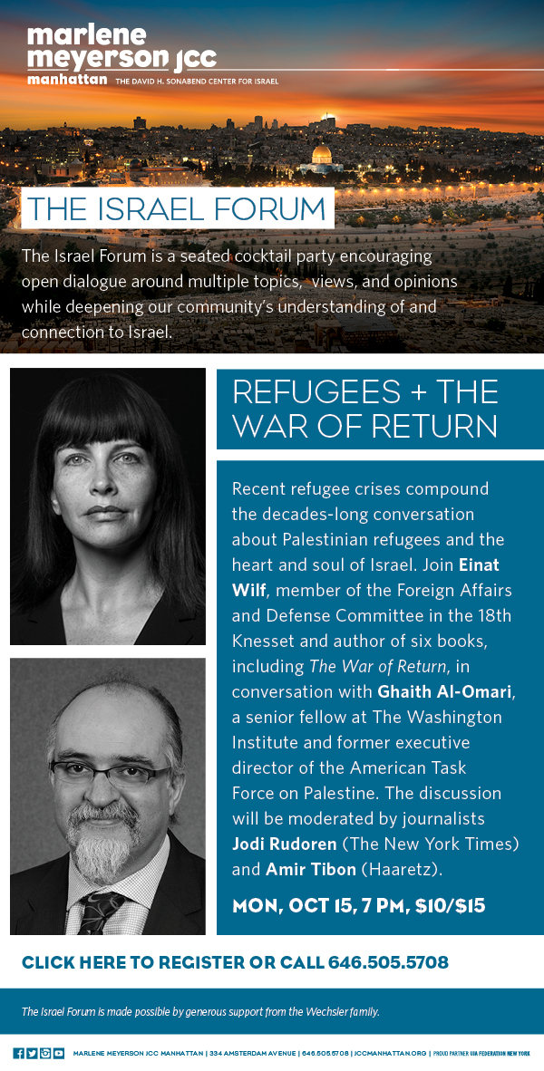 [Sponsored Content] The Israel Forum: Refugees + The War of Return [Sponsored by Marlene Meyerson JCC Manhattan]