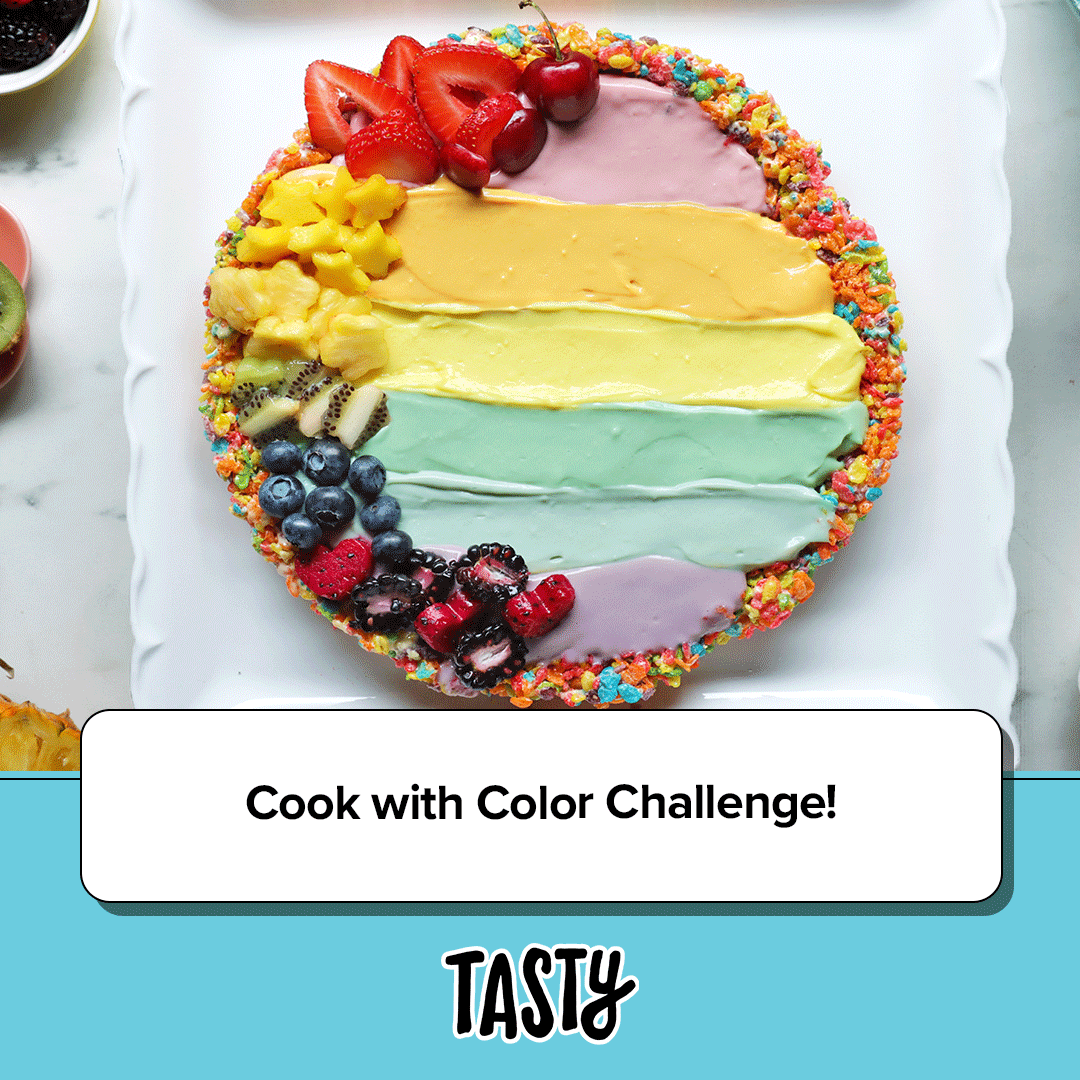 Don't just taste the rainbow with a colorful plate—cook with it! This month, we're tackling colorful recipes inspired by our rainbow cookware available at Walmart. Join us live on Tasty TikTok tonight at 7pm EST to make this rainbow custard tart, play some fun games, and cook with our Tasty creators! If you want to get a head start to cooking with color, try Inga's Rainbow Custard Tart: a colorful custard filling envelopes a sweet marshmallow and cereal crust, and is topped off with a handful of fresh fruit. | |